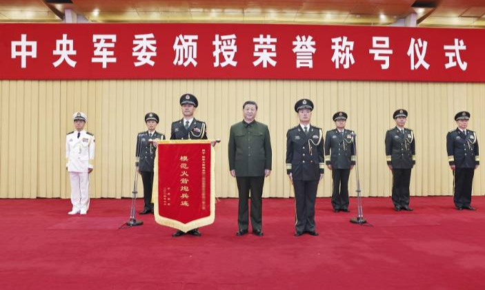 中央軍委舉行榮譽(yù)稱號(hào)頒授儀式 習(xí)近平向獲得榮譽(yù)稱號(hào)的單位頒授獎(jiǎng)旗